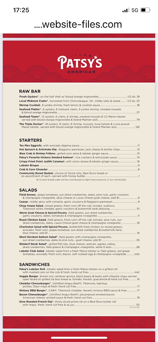 Welcome to Patsy's American, a dining gem located at 8051 Leesburg Pike, Vienna, VA. This modern eatery excels in delivering mouth-watering American cuisine that delights guests every day. With a menu that showcases a variety of dishes, from savory Lobster Rolls to satisfying Louisiana Pasta, the offerings are both innovative and comforting.